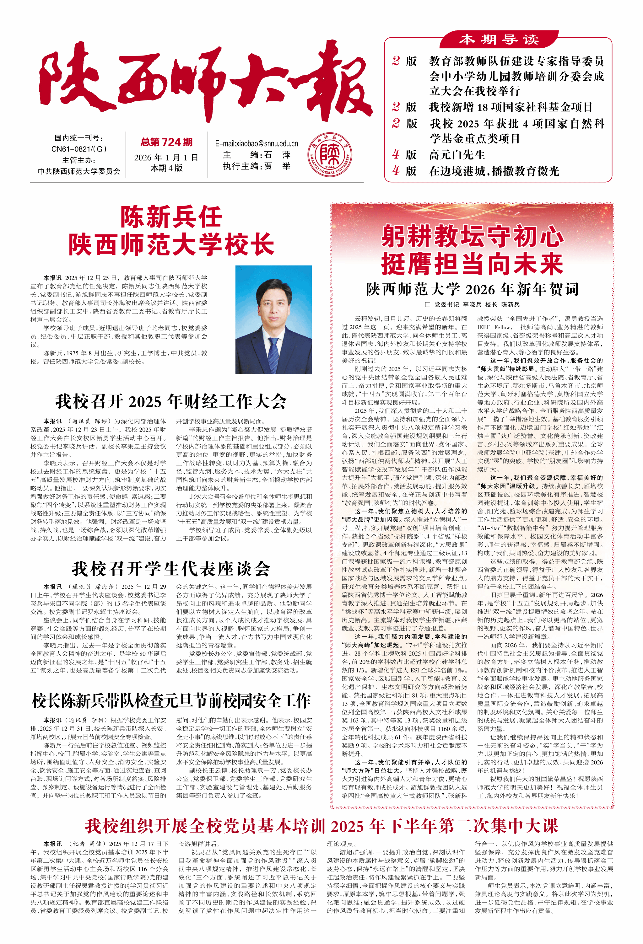 1月13日,《新华每日电讯》07版刊发题为“陕师大:让‘西部红烛’在雪域高原闪耀”的报道文章。文章生动讲述了我校教育援藏师生校友的典型事迹,报道了我校多年来持续通过学生实习支教、师资能力提升等方式深耕教育援藏工作,助力雪域高原基础教育高质量发展的时代担当。