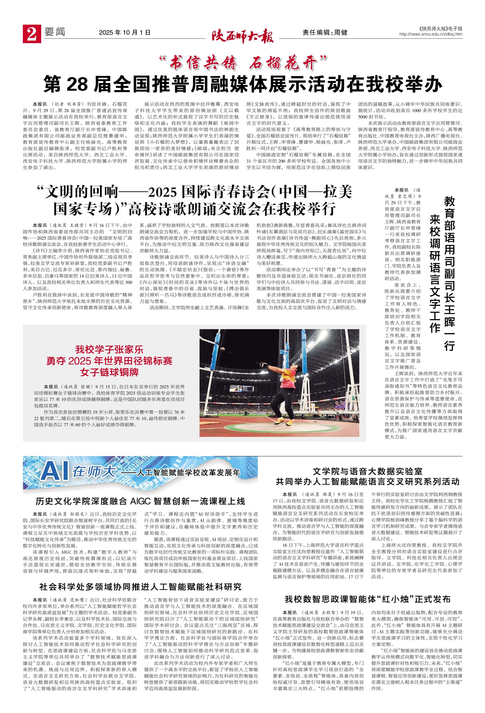 《陕西师大报》总第718期 二版:学校要闻 本期共4版