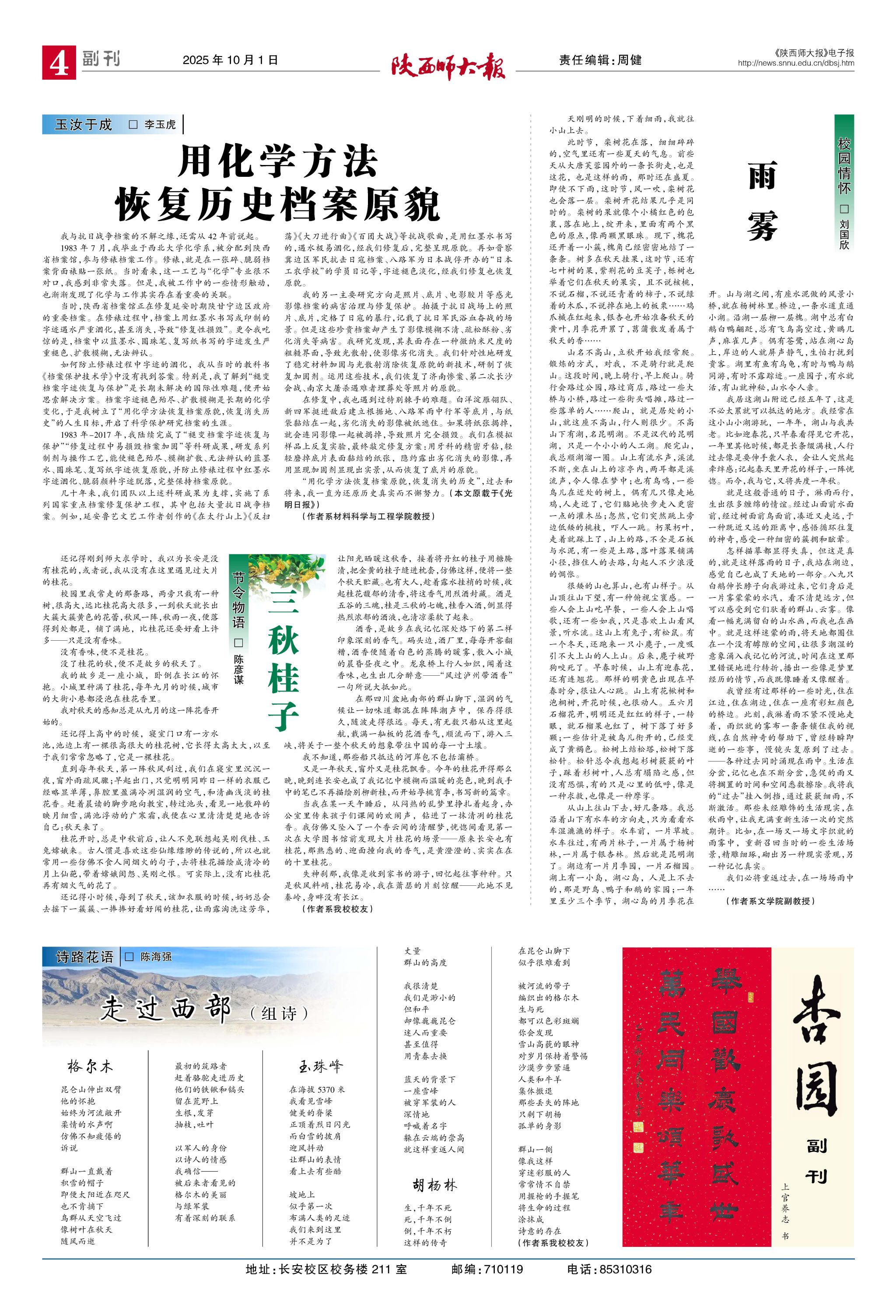 《陕西师大报》总第718期 四版:杏园副刊 本期共4版