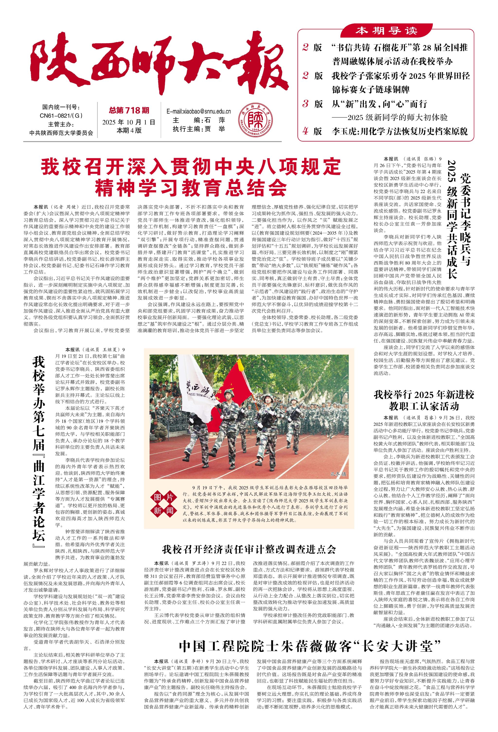 中共陕西师范大学委员会主办 校报编辑部出版 国内统一刊号CN61-0821/(G)