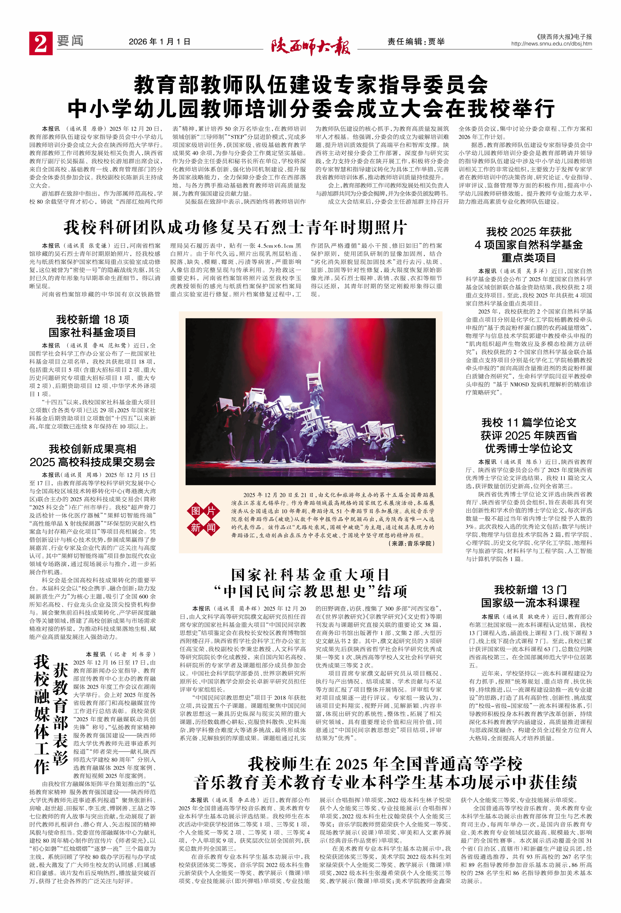 中共陕西师范大学委员会主办 校报编辑部出版 国内统一刊号CN61-0821/(G)