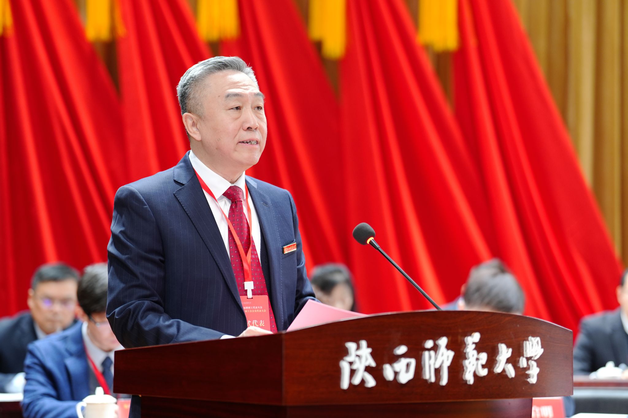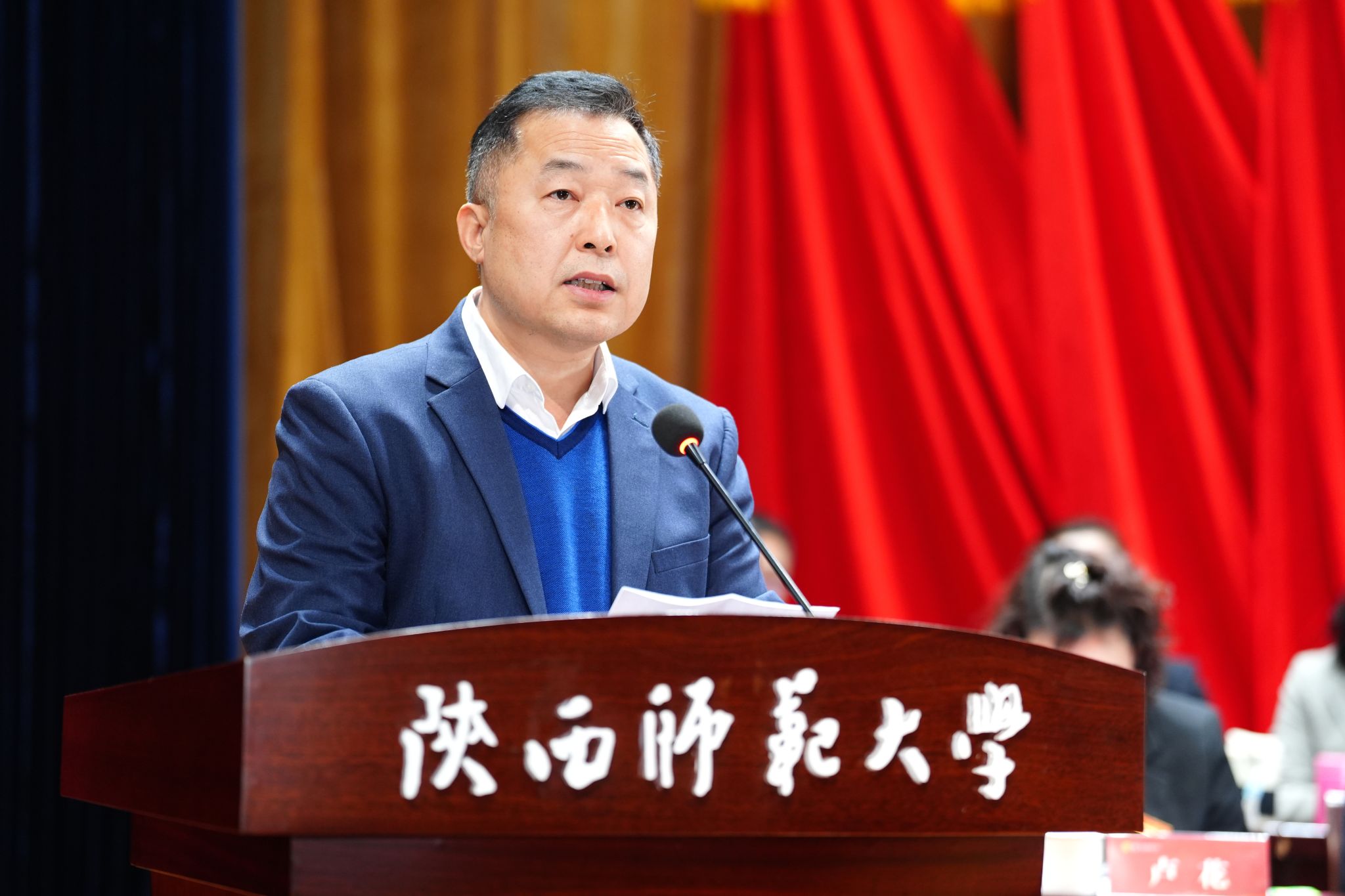 陈新兵表示,过去六年多,全校师生员工始终坚持以习近平新时代中国特色社会主义思想为指导,全面贯彻“面向世界、胸怀国家、心系人民、扎根西部、服务陕西”发展理念,在政治引领、立德树人、教师教育、深化改革等八个方面取得了显著成绩。他指出,我们必须主动适应深刻变革形势,从中国式现代化对教育强国建设的重要部署来看,回答好“何以报国”;从科技革命与产业变革浪潮来看,回答好“何以育才”;从“学龄人口梯次达峰”对教师规模结构质量提出的全新要求来看,回答好“何以强师”;从陕西建设发展之需来看,回答好“何以兴陕”。我们要发挥优势,厚植发展底气,直面瓶颈,锚定发展重点,在人才培养、学科建设、科学研究、队伍建设、治理效能、数智赋能等领域花大力气、下苦功夫。