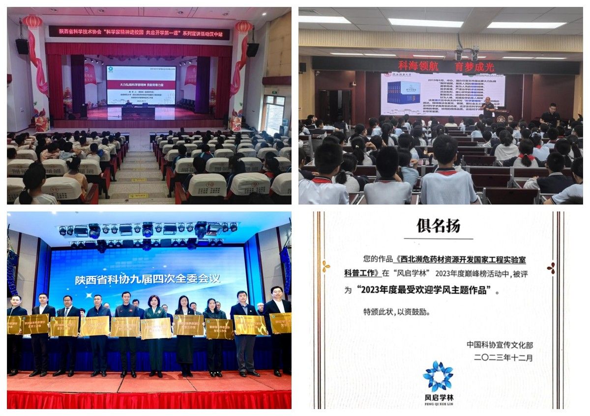 弘扬科学家精神,贡献青春力量。依托中国科协“学风涵养工作室”、陕西省“大思政课”实践教学基地、陕西省首批科学家精神宣讲工作室,实验室组建专家导师宣讲团、青年教师尖兵队、学生志愿实践队,形成“专家领衔、导师讲演、学生实践”的三级育人模式,进社区、进校园、进基层,推广中医药文化与科学家精神。制作《把科技成果写在希望的田野上——记首批全国高校黄大年式教师团队西北濒危药材资源开发教师团队》等优秀传播作品,推广宣传科学家精神和教育家精神。面向全校师生及社会公众举办系列科普讲座与展示活动30余场,让科学家精神触达更多青少年,赢得了广泛好评和积极反响。