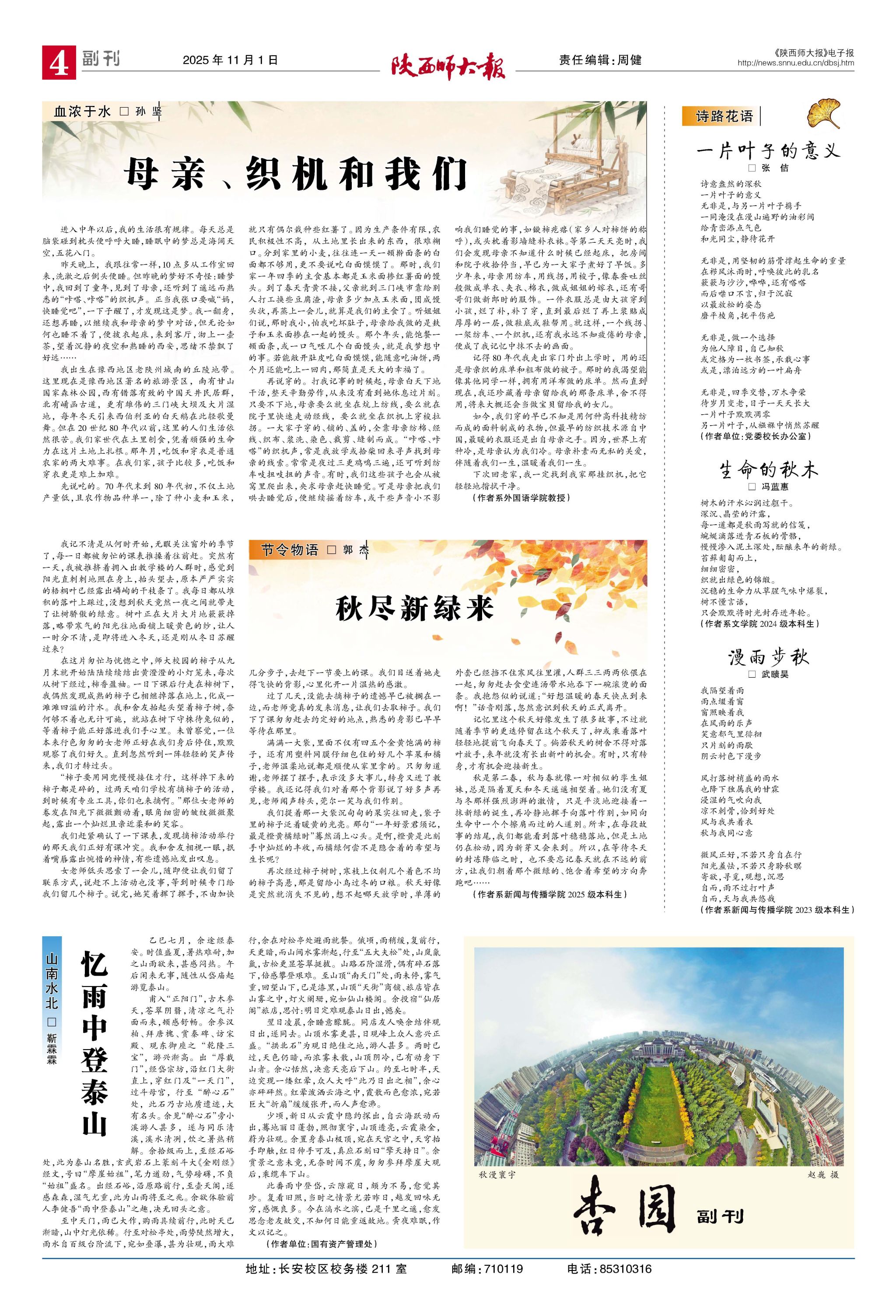 《陕西师大报》总第720期 四版:杏园副刊 本期共4版