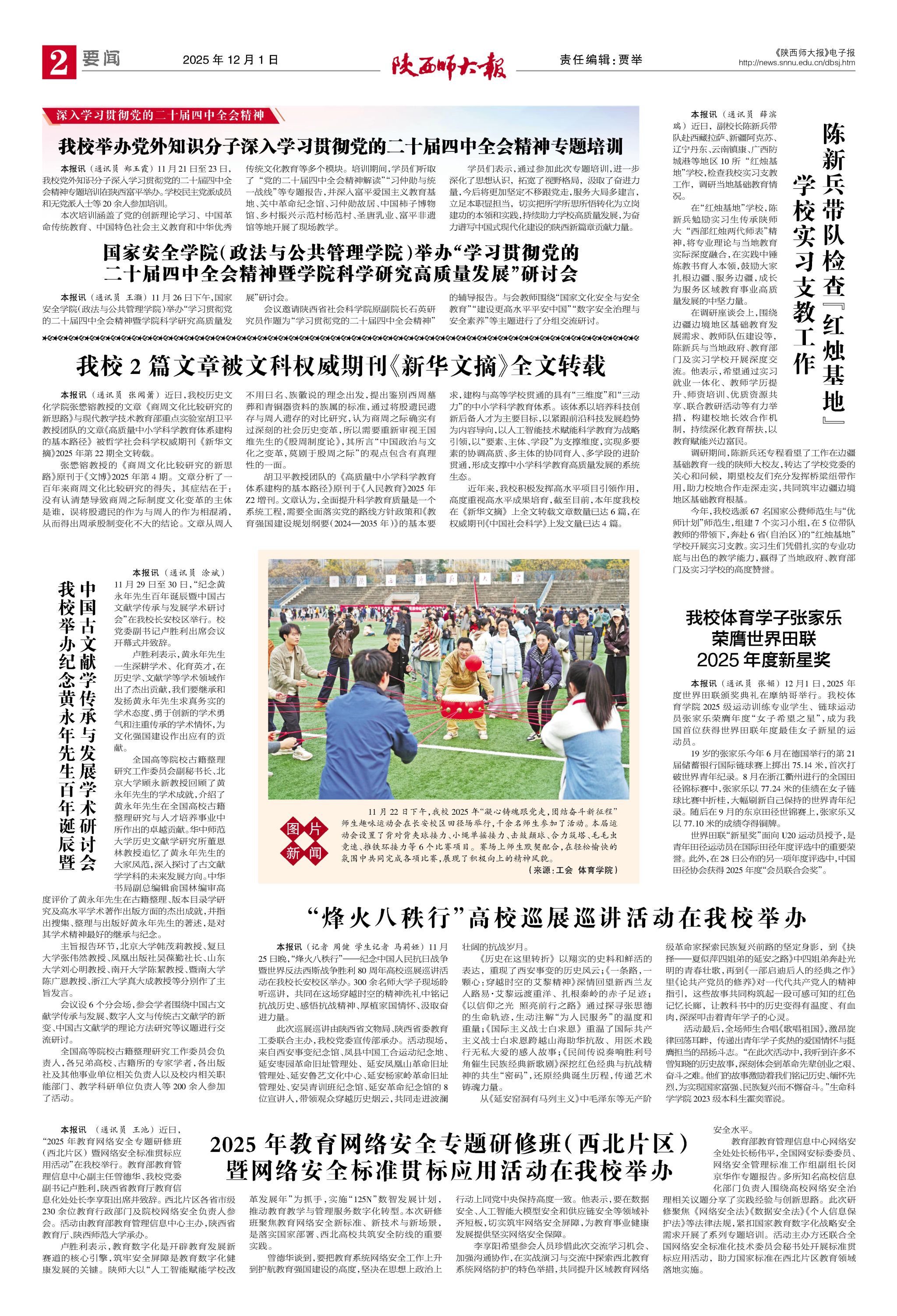 《陕西师大报》总第722期 二版:学校要闻 本期共4版