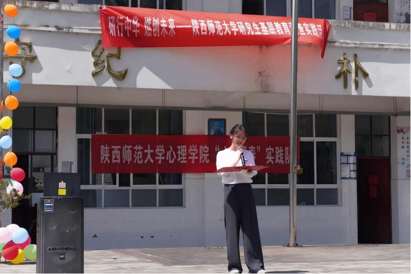 开营仪式上,校长在致辞中强调:“心理健康是学生全面发展的基石。乡村地区的孩子更需要关注内心成长,希望这次活动能帮助他们学会面对困难,获得向上生长的力量。”心理健康教育硕士生党支部成员、实践队队长徐佳惠向孩子们介绍:“我们将一起玩游戏、学知识,发现更强大的自己!”