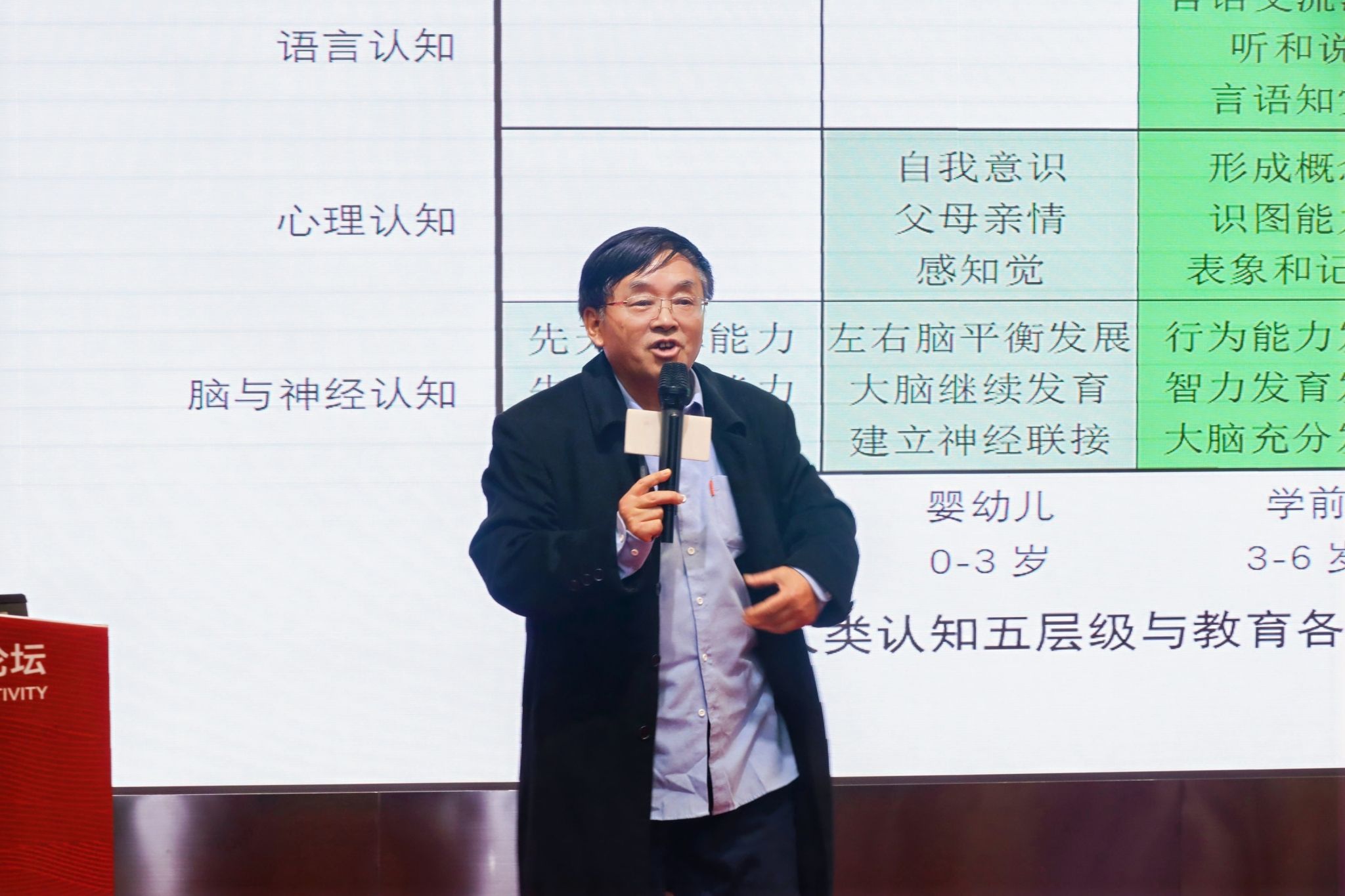 清华大学教授、心理学与认知科学研究中心主任蔡曙山回顾了认知科学在中国的发展经历,提出当前人类正处于四个时代中:综合的时代、大科学时代、人工智能时代、认知科学时代,其中认知科学时代是当下最具本质性的时代特征。在此背景下,他提出了“6+1”的学科框架、人类认知五层级和教育发展五阶段。