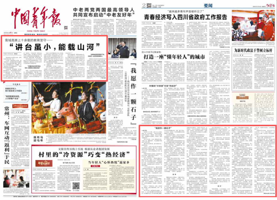 师大新闻网讯 2月1日,中国青年报客户端以“讲台虽小 能载山河 海拔4000米讲台上的坚守”为题,通过真实细腻的叙事生动展现了陕西师范大学毕业生响应国家号召,奔赴西藏基层从事教育工作的感人事迹,深刻诠释了“教育报国”的崇高精神和新时代青年的责任担当。另讯,2月6日,《中国青年报》在01版和02版全文刊发了该报道。